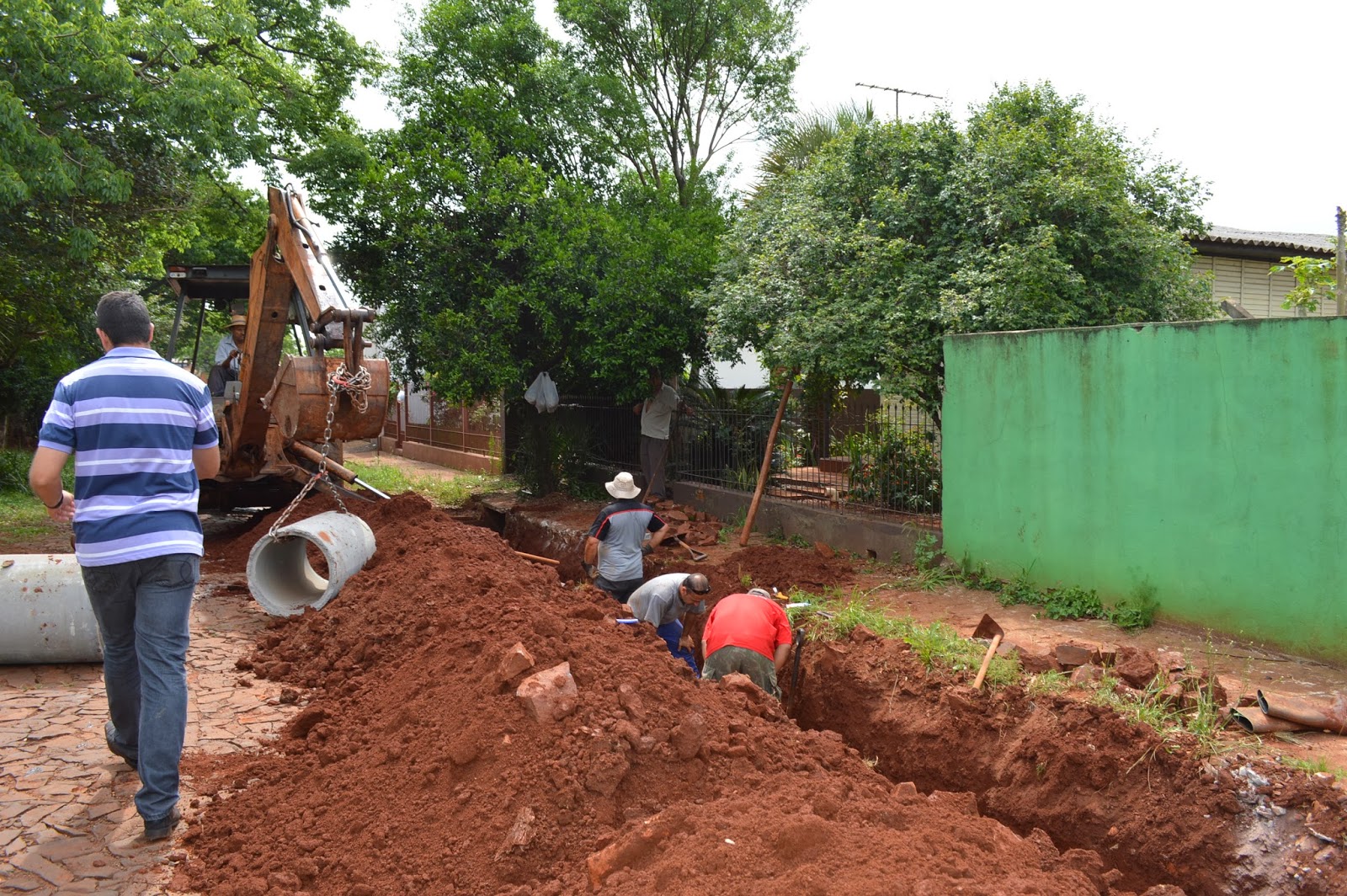 Registramos na tarde de sexta-feira, serviço de construção de nova tubulação para escoamento das águas da chuva sendo realizado pela Secretaria de Obras na Av. Ataídes Pacheco Martins, no Bairro Santa Fé.